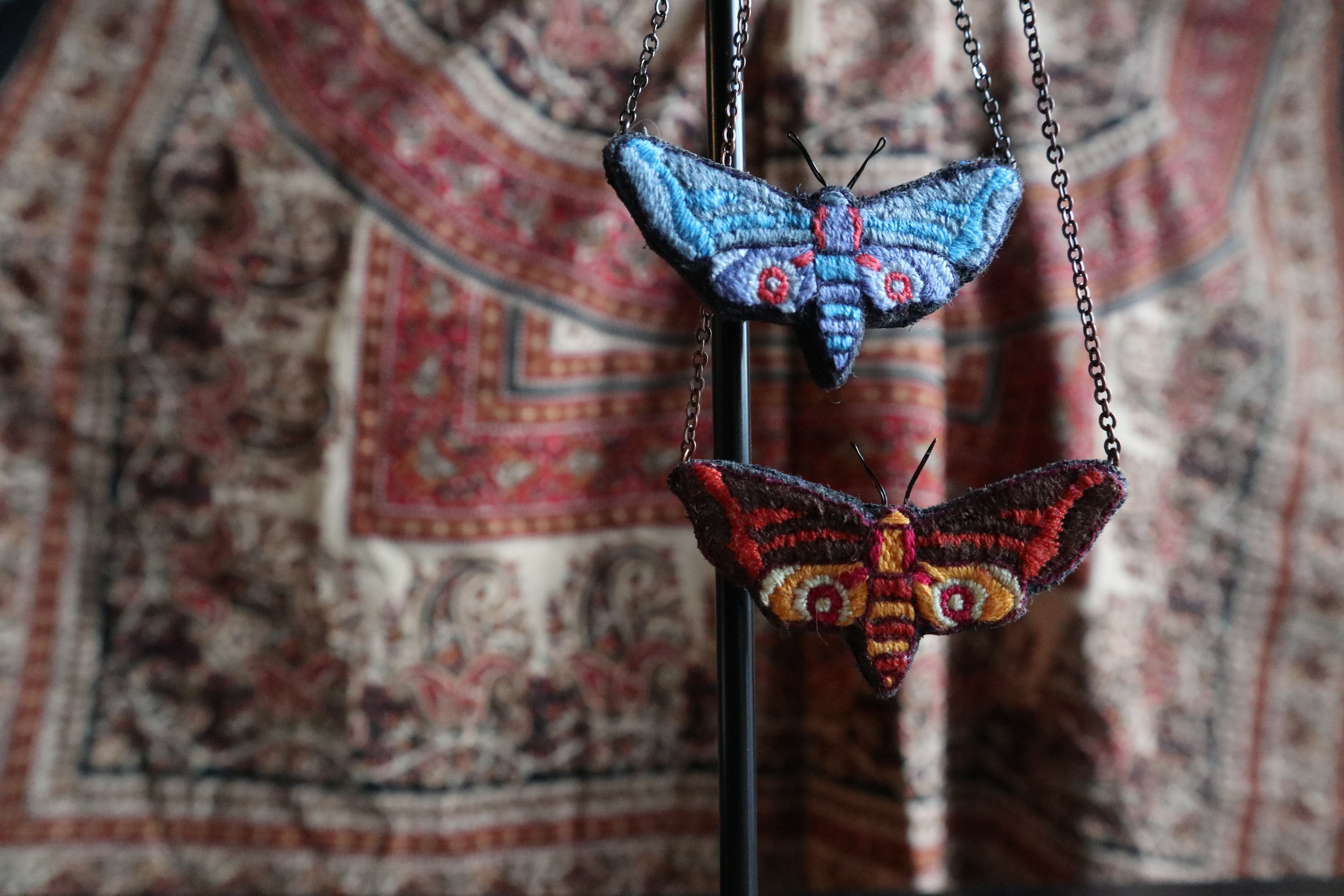 蛾のモチーフ刺繍ネックレスです。